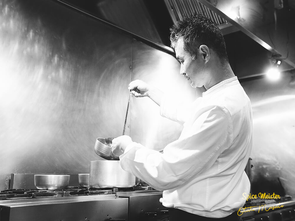独自の調合スパイスと混ぜ合わせることで仕上げています。